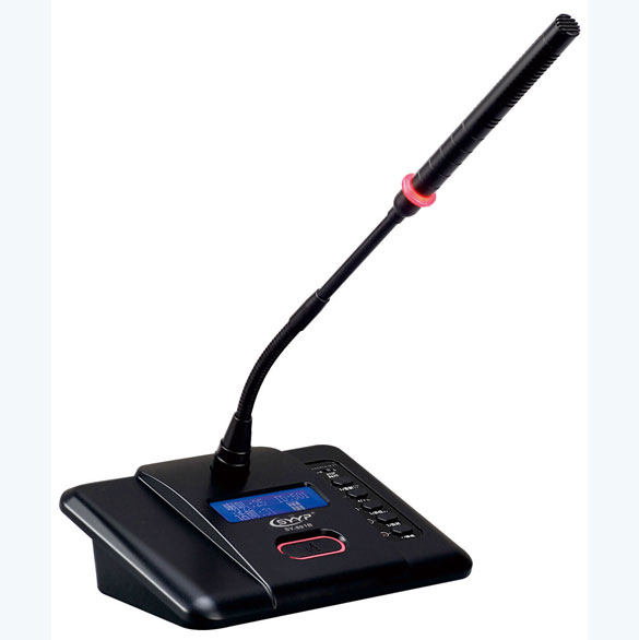 主席單元具有討論會議功能的會議話筒單元,一改突破以往傳統會議系統所采用8針線纜的手拉手傳輸方式的缺陷。而采用現代數字化主流連接方式:RJ45網線型接口,采用高可靠、高性能低功耗處理器,全數字化信號處理對整套系統在抗干擾能力、通訊穩定性和保密性上得到更有效的提升,系統采用加密智能數字化控制技術。話筒底座上設有USB接口,方便與電腦連接可實現對會議過程中進行錄音或會議內容重放播音和網絡信號、背景音樂播放,還可通過使用軟件實時召開多人遠程音頻網絡會議,目前網絡會議支持IPAD/Iphone、IOS系統、Android系統和適用于WindowsXP/7電腦操作系統終端。話筒音頭采用全銅金屬材料設計配合本公司專利最新聲學研究成果;使得語音更加清晰厚實,頻響寬廣,靈敏度高不易產生嘯叫等特點。主席單元設有中斷鍵,可在任何情況下關閉列席話筒,便于管理會議秩序。