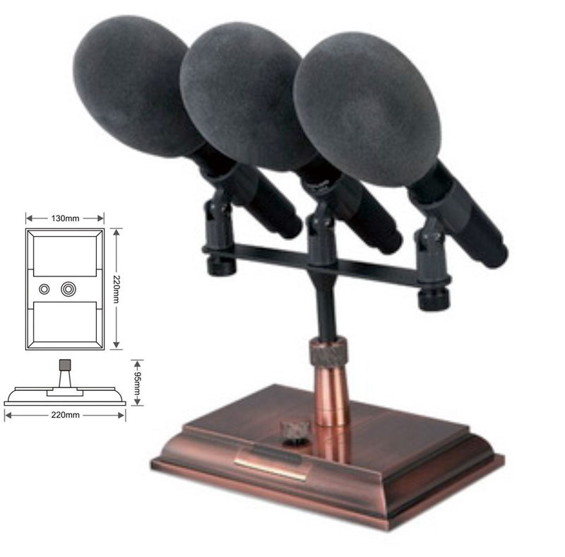 標準配置: SP-400話筒 3支 H-230古銅座 1個 S-30專業防風海綿罩 3個 攜帶保護盒 1個