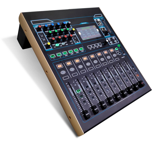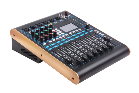 1:16路信號輸入(8路MIC、2組立體聲、1組返回、聲卡/MP3+光纖) 2:輸入處理 -輸入增益調節(電子增益)前級放大,高低通濾波,4段參數均衡,壓縮器,延時,輸入通道聲像平衡調節 3:MIC輸入采用數字增益調節 4:+48V幻象電源(MIC通道獨立打開關閉) 5:內置3個9段圖示均衡器(可任意插入1-8輸入通道) 6:輸入輸出EQ ON/OFF 7:立體聲返回輸入 8:通道參數快速拷貝功能 9:各通道設有多功能菜單,靜音按鍵,監聽按鍵 10:各通道均設有行程100MM電動推子,信號燈、峰值燈(9個推子) 11:8路信號輸出(立體聲主輸出,4路編組輸出,2路輔助輸出) 12:輸出處理 -高低通濾波,15段參數均衡,壓縮器,延時,相位 13:輔助輸出(推子前,推子后) 14:多軌多模式數字錄音功能 15:雙排3色12段電平指示燈 16:內置聲卡(MP3、PC直接播放音樂) 17:4個快捷場景調用模式,20個場景存儲 18:用戶參數的存儲與調用(可在PC端管理) 19:內置兩路雙DSP效果器 20:4.3寸高清觸摸彩屏 21:FX踏板開關接口 22:光纖輸入輸出 23:多操作系統操控軟件(IOS系統, WINDOWS系統)中英文切換顯示 24:支持有線網口調節(或外接路由器無線調節) 25:用戶可自定義層 26:參數鎖定功能 27:RS232中控調節