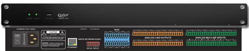 模擬輸入通道:16 模擬輸出通道:16 處理器:ADI SHARC 21489@450 MHz SIMD; DSP處理能力:400 MIPS,1.6 GFLOPS; 采樣率:48 kHz,± 100 ppm; 動態范圍(A/D/A):>107 dB,A加權; THD + 噪音:<-90 dB (22.4 kHz BW,不加權);1 kHz @+18 dBu帶0 dB增益; 內置一進一出的USB聲卡,支持音樂播放、錄制和軟視頻會議(如:ZOOM,騰訊會議,釘釘會議等); 總線式AEC,尾長時間:512ms,收斂率:60dB/S, 回聲消除幅度:60dB; 獨立通道的AFC(反饋抑制),采用陷波式算法,傳聲增益提升幅度:10dB; 噪聲抑制(ANS),信噪比提升18dB 8段英式參量均衡,提供5種濾波器選擇:Parametric,Lowshelf,Highshelf,Lowpass,Highpass; 提供終端用戶訂制操作界面,最大支持30臺設備同一個界面管理; 具有中央控制功能,可對系統中的電源、信號切換、環境控制、音頻等整體控制,實現一鍵開啟系統所需要的功能。